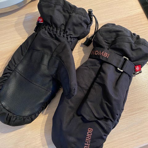 Tykke votter til ski eller bruk om vinteren. Med stroppe rundt håndledd for sikring i heisen.