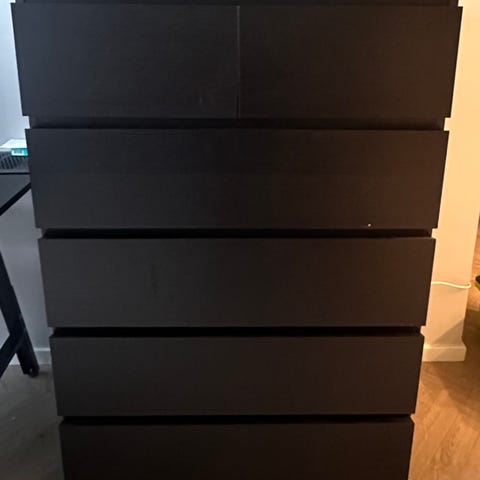Kommoden er pent brukt, men med noen små bruksmerker. Den ble kjøpt brukt i fjor.