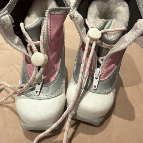 Alpina barne langrennssko i rosa og hvit farge. Str 26 og 29. Modellen har glidelås i front og overtrekk som dekker lissesystemet for å beskytte mot snø og fukt. Sålen er tilpasset vanlige langrennsbindinger for barn. Skoene har myk polstring rundt ankelpartiet og er egnet til bruk på ski for mindre barn.