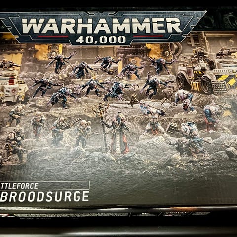 Ny og uåpnet Games Workshop Warhammer 40,000 Kill Team Hivestorm brettspill og miniatyrsett. Dette settet er ute av produksjon (OOP) og derfor sjeldent. Esken har to merker på fremsiden som var der etter kjøp direkte fra Games Workshop, ellers helt plettfri og uåpnet.