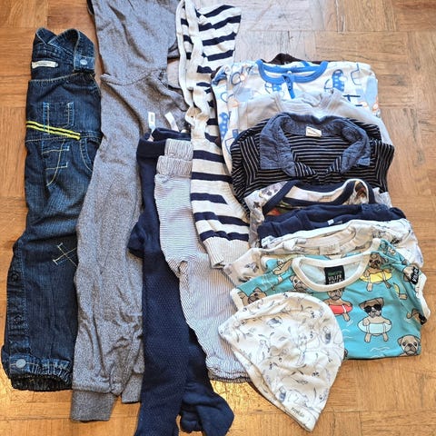 Klespakke med sommerklær til gutt i størrelse 122-128. Består av: