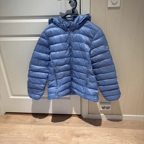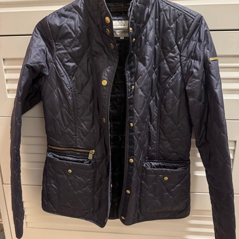 Va Vite jakke for dame i størrelse 44. Jakken er blå og laget i polyester med vattert, quiltet mønster foran og bak. Den har høy krage, glidelås og trykknapper i front, samt glidelåslommer i siden. Elastiske stoffpaneler i sidene gir bedre bevegelighet og passform. Egner seg som lett ytterjakke i overgangssesonger. Den er veldig lite brukt .Selges for kr 250 .Nypris kr 1500 .Tidløs ,forseggjort jakke .