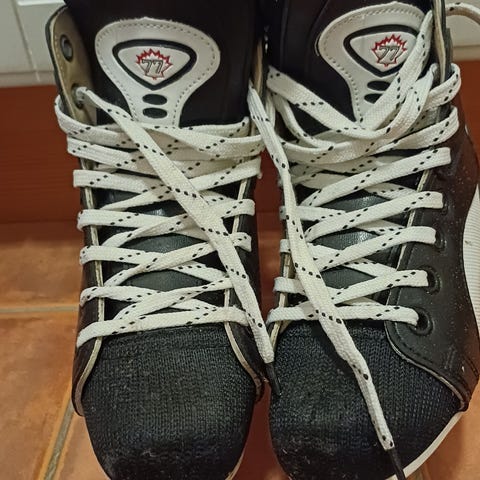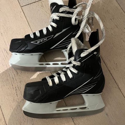 Ishockeyskøyter for barn i størrelse 35. Modellen har svart overdel med lisser og justeringsspenner. Skøytene er egnet til ishockey og annen bruk for barn med skostørrelse 35.
