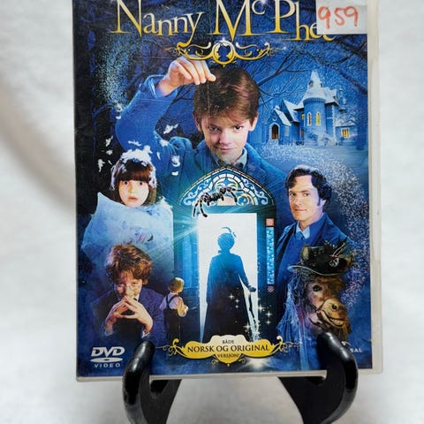 Nanny McPhee. Familiefilm utgitt på DVD-disc. Inneholder både original versjon og utgave med Norsk tale. Spilletid ca 1,5 timer. Fremstår som ny. Ingen skader. Sendes mot porto.