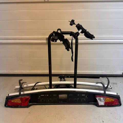 Thule sykkelstativ for bil. Stativet festes på bilen og har plass til flere sykler, med justerbare holdere og stropper for å sikre syklene under transport. Passer for montering bak på bil, avhengig av bilmodell og type festeanordning. Egnet til transport av sykler på korte og lengre turer.
