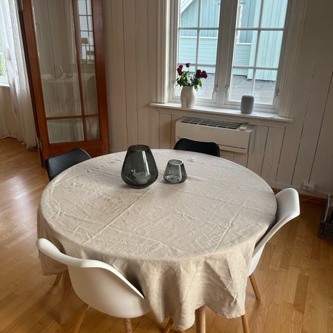 Bordplata er ikke fin, trenger et strøk maling eller folie 😅