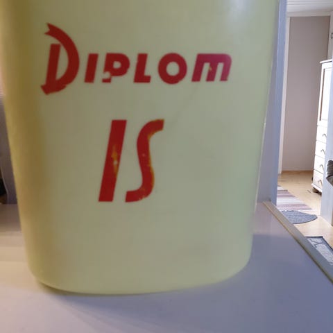 Diplom Is skilt og søppelkasse