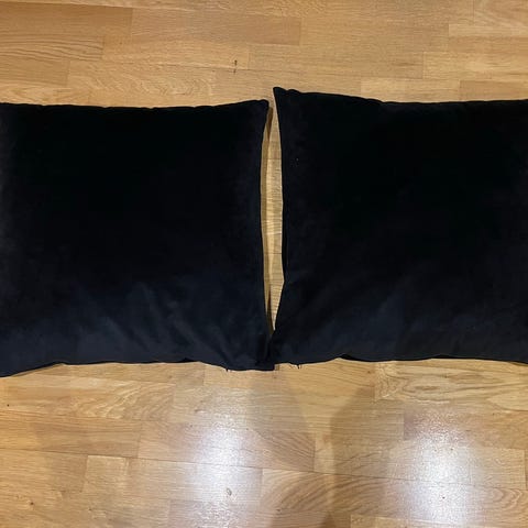 6 stk pynteputer (40 x 40) med dunfyll og svart velour trekk selges samlet. Ubrukt og uten skader eller merker. Må hentes på Vea.