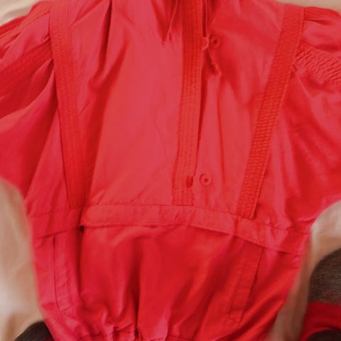 Selger en pent brukt anorakk til dame. Laget i Finland. Større S (34). I pen rød farge. Har magelomme med glidelås og glidelås på øvre del av brystet, samt på begge sidelommene. Plagget har hette med strammesnor, samt også strammesnor nedentil langs livet. Den er foret innvendig. Se på bildene for deltajer. Anorakken er lite brukt, og forsatt i god stand.