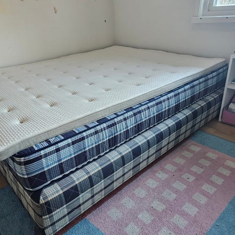 Kun brukt en ukes tid med laken. Så fremstår som ny. Har en kjerne med memory skum som likner på tempur madrass. Former seg etter kroppen.