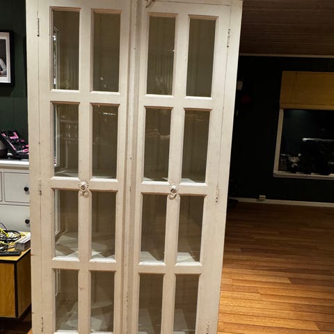 Fint og klassisk vitrineskap med lys. Skapet er i heltre om må fraktes i sin helhet. Det er noen små bruksmerker her og der som jeg har prøvd å få med på bilder. Også mulighet for å komme å se på det. De nederste hyllene ble knust for en tid tilbake, men det er sikkert mulig å montere på nye. Låsefunksjonen på døra fungerer ikke, men dørene går fint igjen. Vet ikke hvor skapet er kjøpt, da det er arvegods etter besteforeldre. Er nok rundt 30-40 år gammelt.