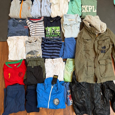 Klespakke med masse jakker, fleece mm til gutt. Alt i størrelsene 120-128