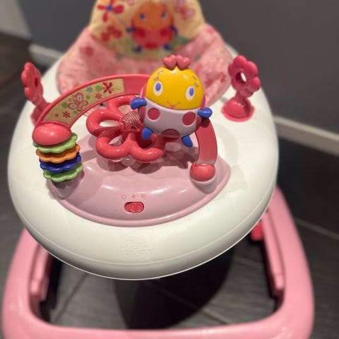 Selger «yngri» gåstol i rød farge. Den er brukt og har litt klistremerker på, så selges derfor billig. Men den er utrolig kul og har vært populær av barna. Selges da den alle barna klarer å gå selv nå.