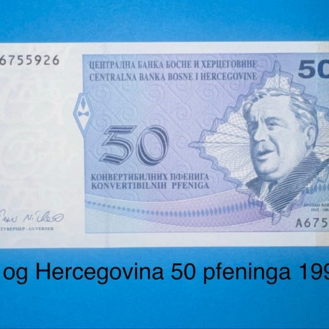 Bosnia og Hercegovina med pålydende verdi 5 konvertible mark. Usirkulert