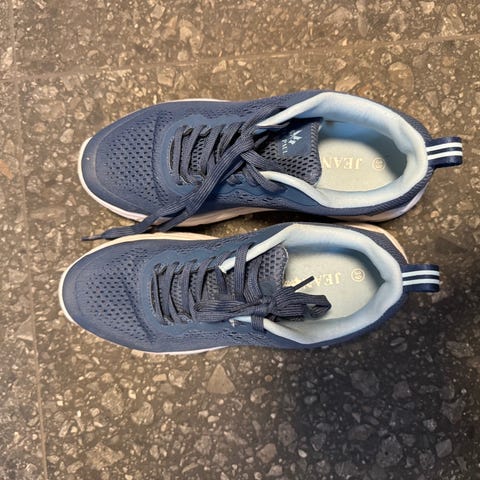 Jean Paul sneakers joggesko i størrelse 38. Modellen er i svart med lys såle og snøring foran. Overdelen består av tekstil og syntetisk materiale, med polstret kant rundt ankelen for økt komfort. Yttersålen er i gummi med mønster for bedre grep. Passer til hverdagsbruk og lett aktivitet.