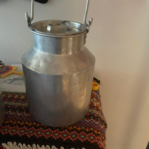 Veddunk i kobber, høyde 38 cm og diameter 48 cm