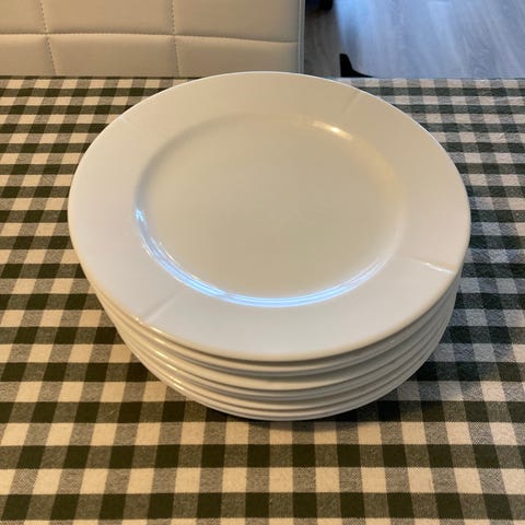 Rosendahl middagstallerkener 27cm. Selger 8stk samla for 500kr. De har litt bruksmerker fra bestikk, men syns ikke veldig mye og er ellers helt fine.