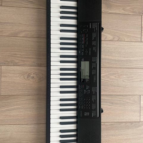 Casio CTK-3500 keyboard med 61 tangenter i svart utførelse. Instrumentet har innebygde høyttalere, display og ulike funksjonsknapper for lyder, rytmer og innstillinger. Egnet som elektronisk keyboard til øving hjemme eller til bruk i undervisning og hobbyspill. Strømtilkobling og hodetelefonutgang er integrert i instrumentet.