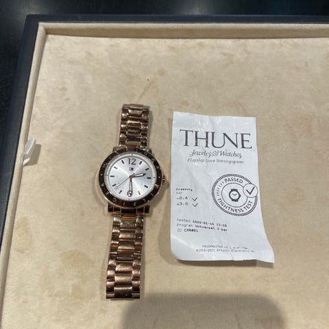 Tommy Hilfiger unisex armbåndsur med hvit urskive og hvit silikonrem. Klokken har rund urkasse i metall med dreibar bezel markert med tall. Urskiven har tre mindre skiver for ekstra funksjoner, samt tydelige timemarkeringer og visere. Remmen er i hvit silikon med spenne i metall og karakteristiske Tommy Hilfiger-detaljer. Baklokket er i rustfritt stål og oppgitt som vannresistent. Passer til både dame og herre til hverdagsbruk.