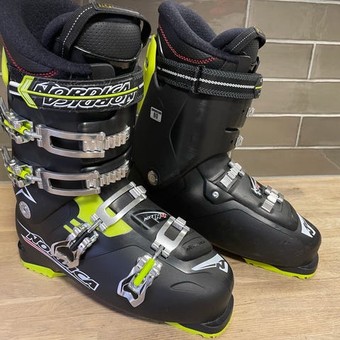 Selger et par Nordica NF5 alpinstøvler i pen stand.