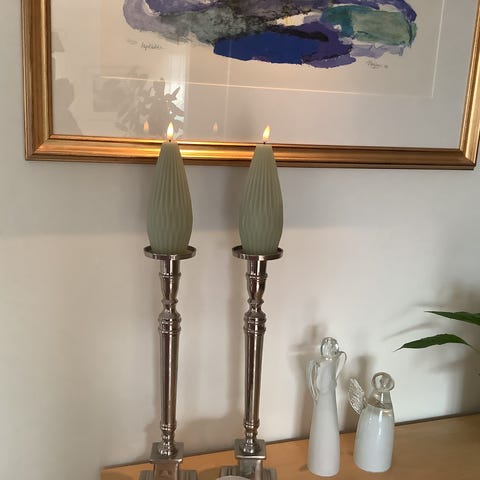 Et stort duftlys med lavendel fra Bath & Body works (USA). Glasskrukke i frostet glass, med metallokk i en nydelig bronsefarge og struktur.