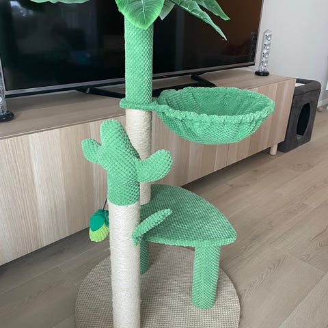 Klorestativ i form av en kaktus og leker till kattunge selges samlet. Kjøpt nytt høst 2025. Nå er katten mest ute så har ikke plass i liten leilighet. Løs tråd på klorekaktus, kan festens på igen. Ellers fin stand.