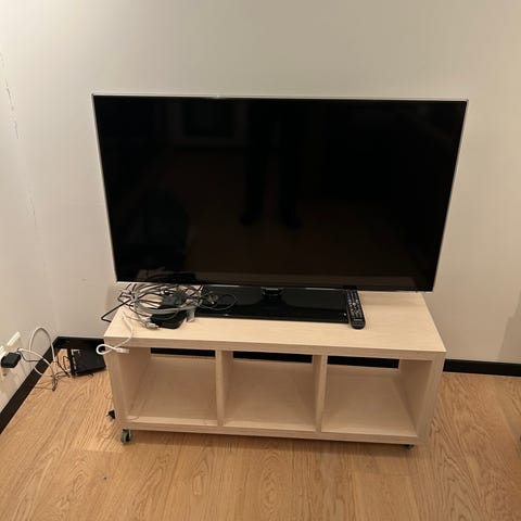 Selger TV og TV benk med innebygd hjemmekino.