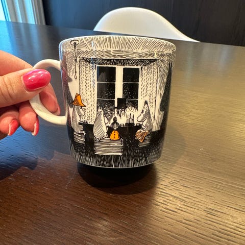 10 mummikopper, normalt brukt i pen tilstand. Små riper bruksmerker etter vask kan sees om man ser nøye. Noen av koppene er utgåtte modeller (se bildetekst for mer info)