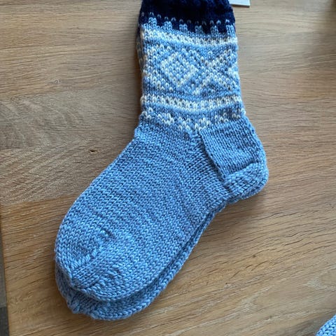 Ukjent merke ullsokker mønstrete blå grå rød