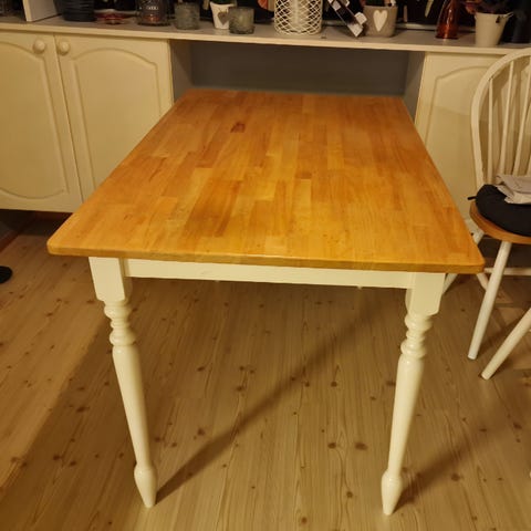 Sort køkkenbord med noen merker trenger ny eier. Vi arvet dette etter forrige eier av leiligheten vår, men ser nå at vi ønsker oss et annet. Dette selges derfor. Bordet er 100cm bredt, 314cm i omkrets og 75cm høyt. Bena lar seg skru av med umbraco.