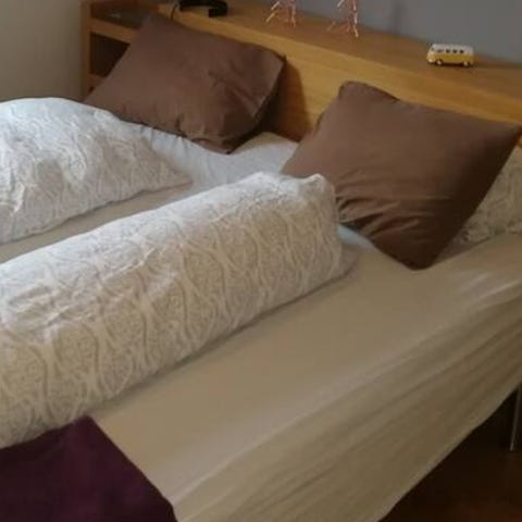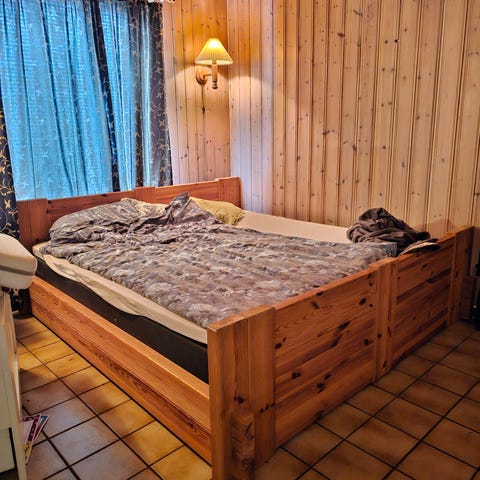 Pent brukt retroseng med integrerte nattbord