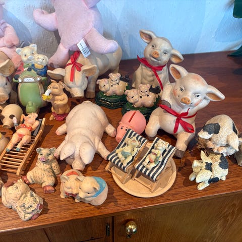 Selger en samling fra 1990-2000-tallet, med små grisefigurer i størrelsen 1 cm til ca 8-10 centimeter. Mange ulike materialer og typer, som keramikkgriser, metall, osv. Selges samlet og må hentes i Drammen. Se også mine andre annonser, der der er det flere figurer. Kom gjerne med bud!