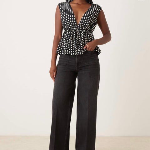 ASOS Design jeans for dame i svart denim. Buksen har livvidde W26 og tilsvarer størrelse S. Klassisk femlommersmodell med beltehemper og glidelås-/knappelukking. Passer til hverdagsbruk og kan kombineres med ulike topper og sko for både avslappede og mer oppkledde antrekk.