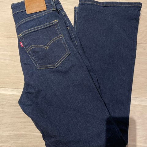 Selger en pent brukt mørk blå Levis bukse i str. 26/32. Modellen er 725 high rise bootcut som vil si at den har en liten sleng. Den er kun brukt noen få ganger og har ingen merker. Selges da den ikke blir brukt.