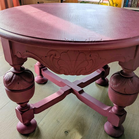 Kjøpt spisebord på loppemarked, pusset det ned og malt det i en nydelig burgunderrød farge