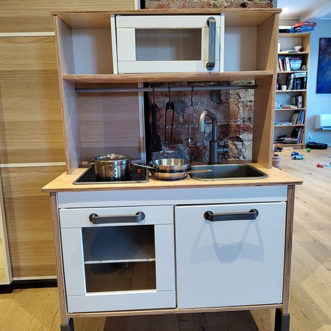 Selger et solid og stabilt lekekjøkken i tre.