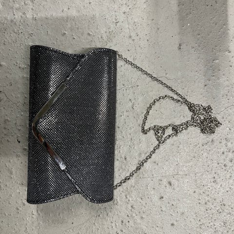 Bæremåte: Det medfølger en tynn skulderlenke i sølv som ligger inni vesken.