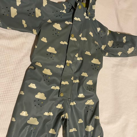 Pent brukt kattnakken vinterregndress str 80. Ingen skader. Heile og fine fotstrikker.
