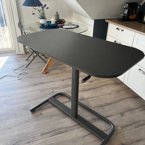 Flott og robust skrivebord med chrome og svart understell. Noe få merker på bordplate (se siste bilde).
