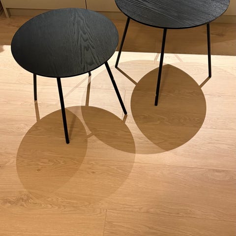 Choice dofabord sett mini selges.kjøpt i februar 2025.ingen bruksmerker pene bord.størrelse.dia.64cm og høyde.48cm..dia 50cm høyde 44cm