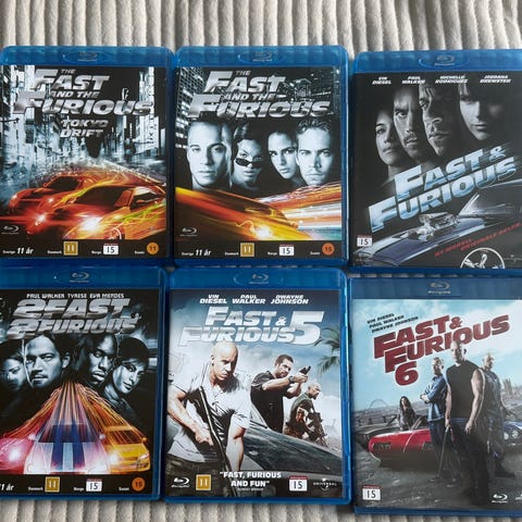 Fast & Furious 7 Blu-ray film og Fast & Furious 6-Movie Collection Blu-ray samleboks.