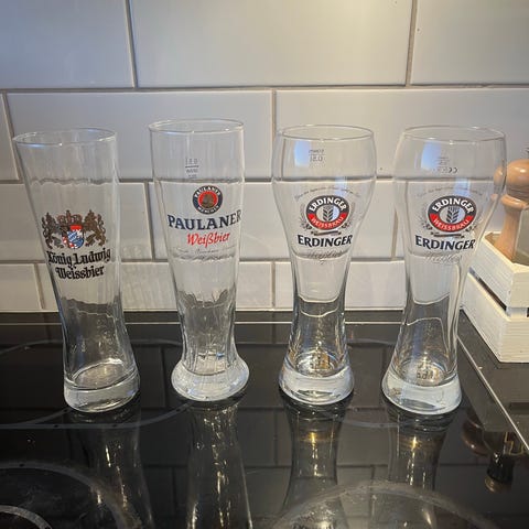 Det ene ølglasset (blanc) har et nagg, ellers pene.