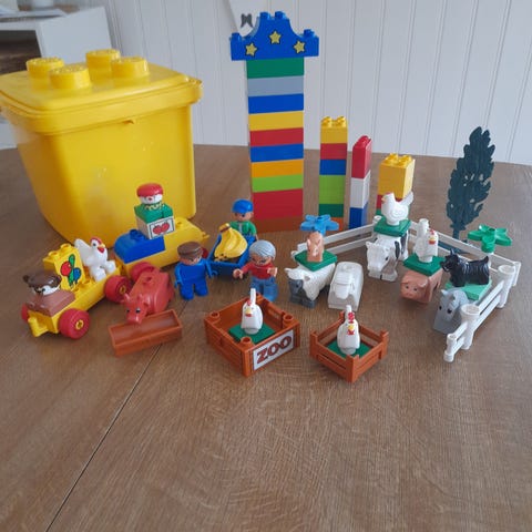 Klassiske gårdsdyr malt i naturtro farger. Settet inneholder elleve dyr og elleve tilbehør. Dyrene er morsomme å leke med, og de stimulerer barnets utvikling. Praktisk plastbøtte til å oppbevare dyrene i medfølger