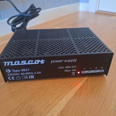 MASCOT spenningsforsyning Type 8421. Produsert i Norge. Justerbar utgangsspenning via potensiometer i front.