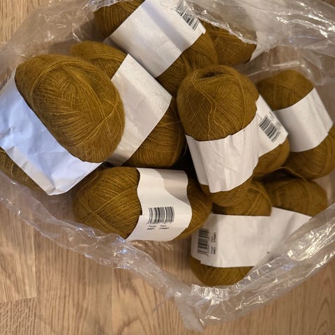 Selger 9 nøster av dette nydelige garnet. Begynte å strikke med det, men fant ut at det ikke er min farge dessverre. Alt er samme parti og fargekode.
