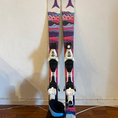 Tecnica alpinstøvler og Atomic alpinski med bindinger som egner seg godt for barn som skal lære seg å stå alpint.