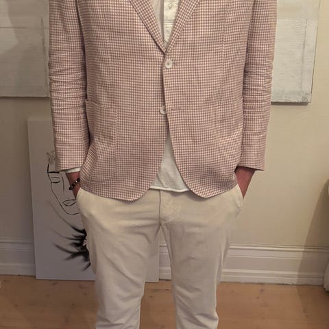 Dette er en blazer for den som har alt og nøyer seg ikke med mindre enn det aller beste. Dette er et samler objekt, nydelige ruter og farger i cashgora og angora, de som er kjent med tekstilverden vet at dette er ordentlig luksus som er vanskelig å få tak i. Den har skinn detaljer på albuene, lite spart på. Lardini genser og Jacob Cohen buksen på bilde 3 kan også bli solgt til rett pris. Gjerne ta en titt på mine andre annonser legger ut mer fra Tagliatore, Ralph Lauren fremover. Så gjerne følg meg dersom det er merker du liker.