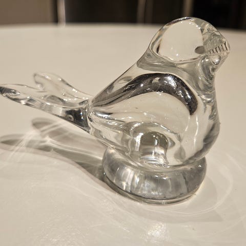 Sjarmerende liten glassfugl (6 cm) med åpent nebb