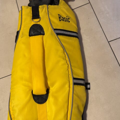 Basic Float Eco 2.0 er en gul redningsvest til hund med god passform og bærehåndtak. Laget av resirkulert polyester – trygghet for hunden ved vannet.