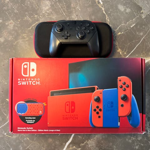 Nintendo Switch med 2 Mario spill, Nintendo Switch Pro Kontroller